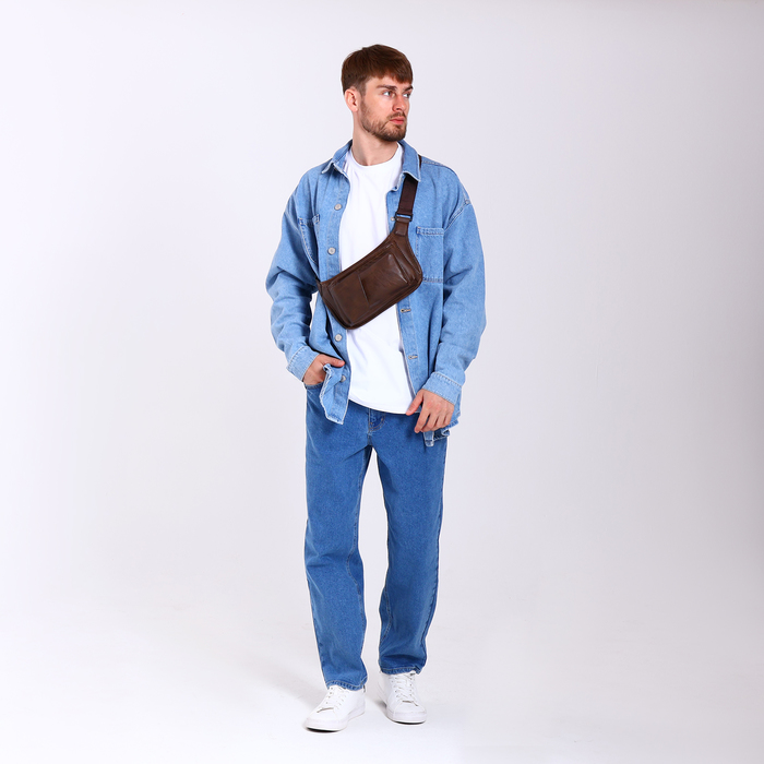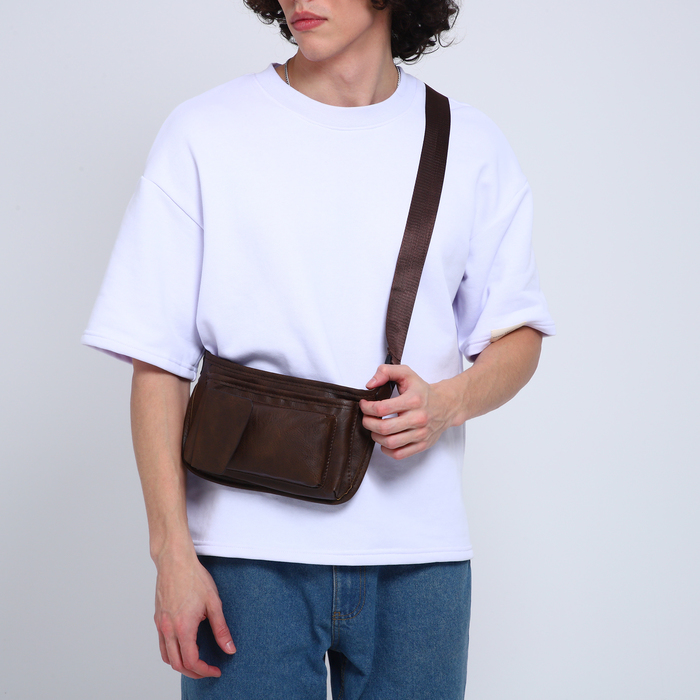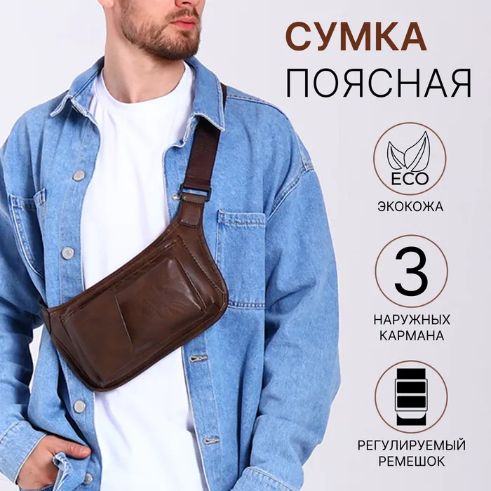 Поясная сумка на молнии, 3 наружных кармана, цвет коричневый — Характеристики