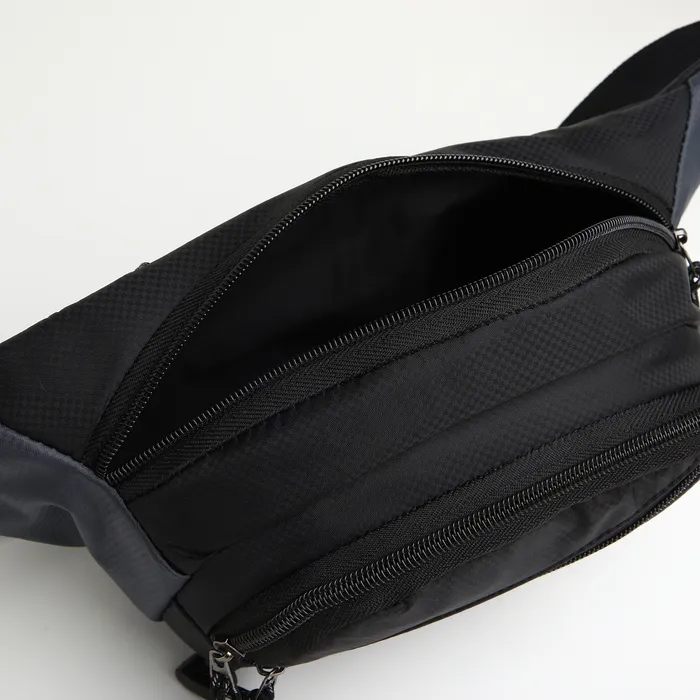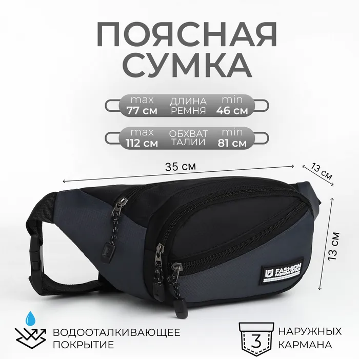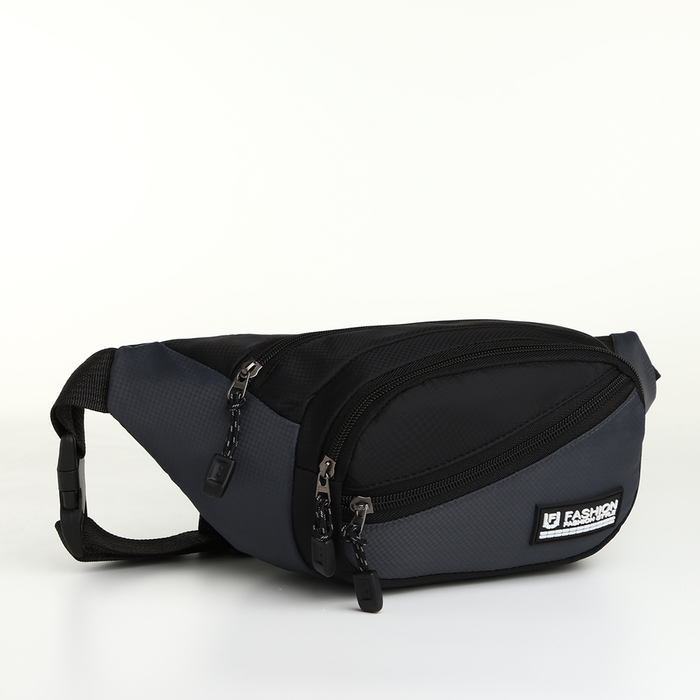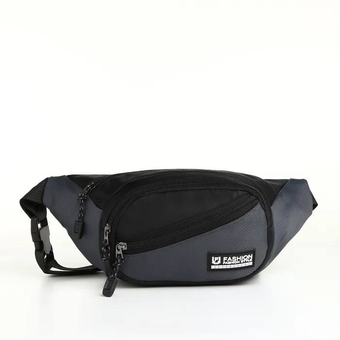 Поясная сумка на молнии, 3 наружных кармана, цвет серый/чёрный — Характеристики