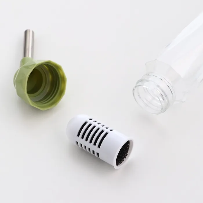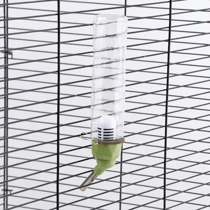 Поилка с дозатором предотвращает вытекание воды, поэтому в клетке всегда будет сухо, так же имеется фильтр для отчистки воды.