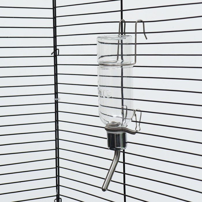 Поилка для грызунов вместимостью изготовлена из пластика и нержавеющей стали.