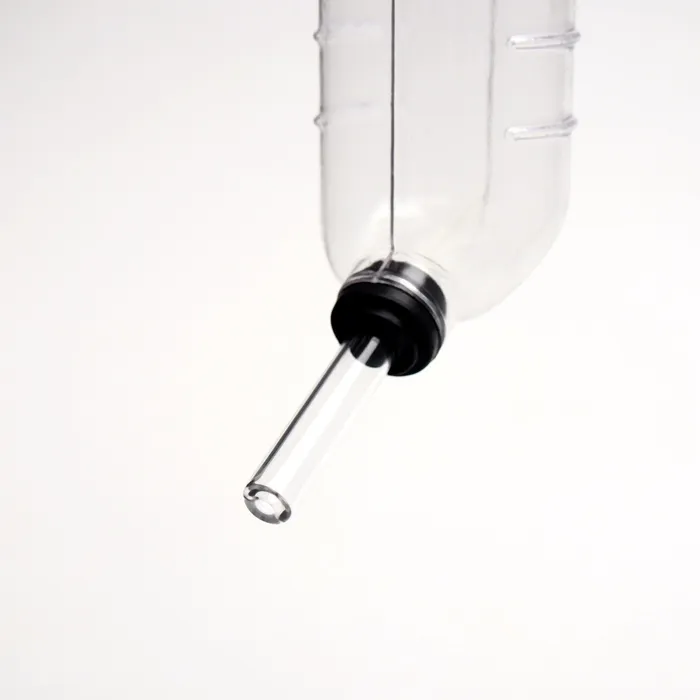 Благодаря стеклянному носику без шарика поилка становиться бесшумной.