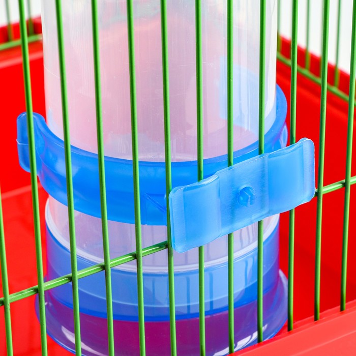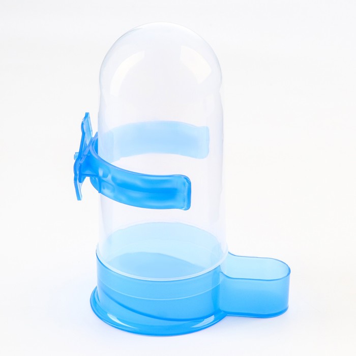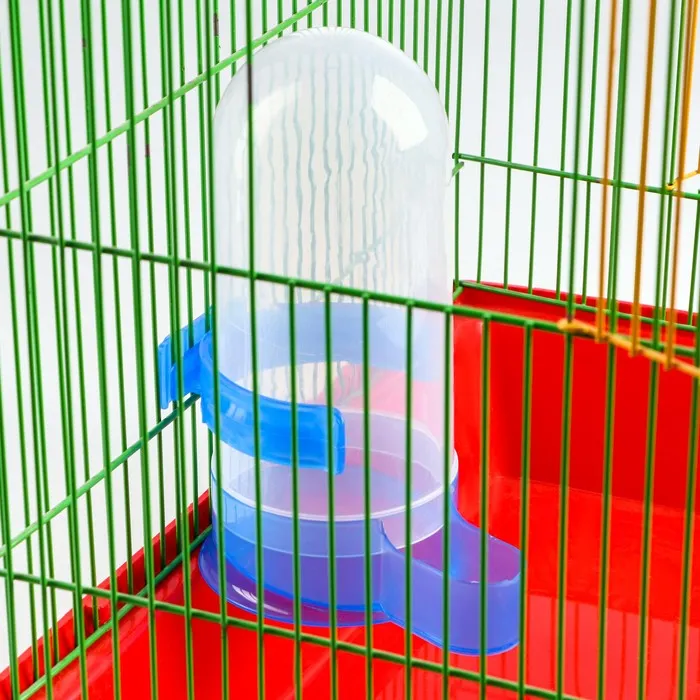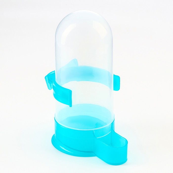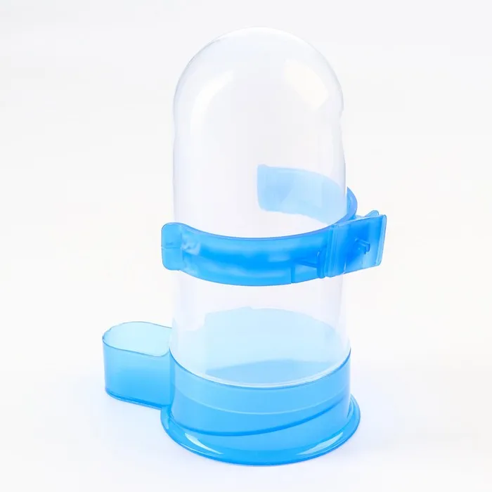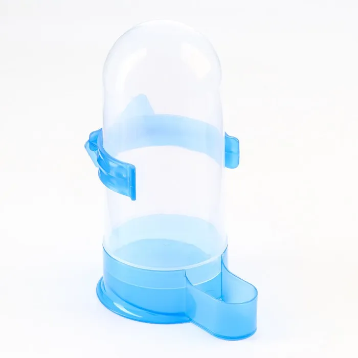 Универсальная поилка для птиц обеспечит пернатого питомца чистой водой в любое время суток. Она представляет собой пластиковую колбу, оснащенную дозатором, который подает ее по мере необходимости. За счет прозрачной текстуры поилки, можно легко контролировать уровень воды в ней.