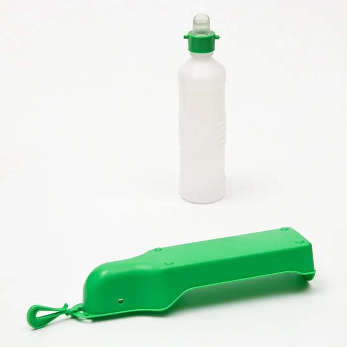 Поилка для собак помогает напоить питомца вне дома. Поилка для собак изготовлена из пищевого пластика, который отлично сохраняет свежесть воды в течение дня. Собаке очень удобно пить из нее воду. С поилкой для собак прогулки с питомцем в летнее время станут настоящим удовольствием и вам больше никогда не придется искать воду и поить собаку из ладоней! И больше никакого питья из луж. Также, бутылка для собак отлично подходит для путешествий, во время посещения ветклиник, груминг салонов и т.д.
