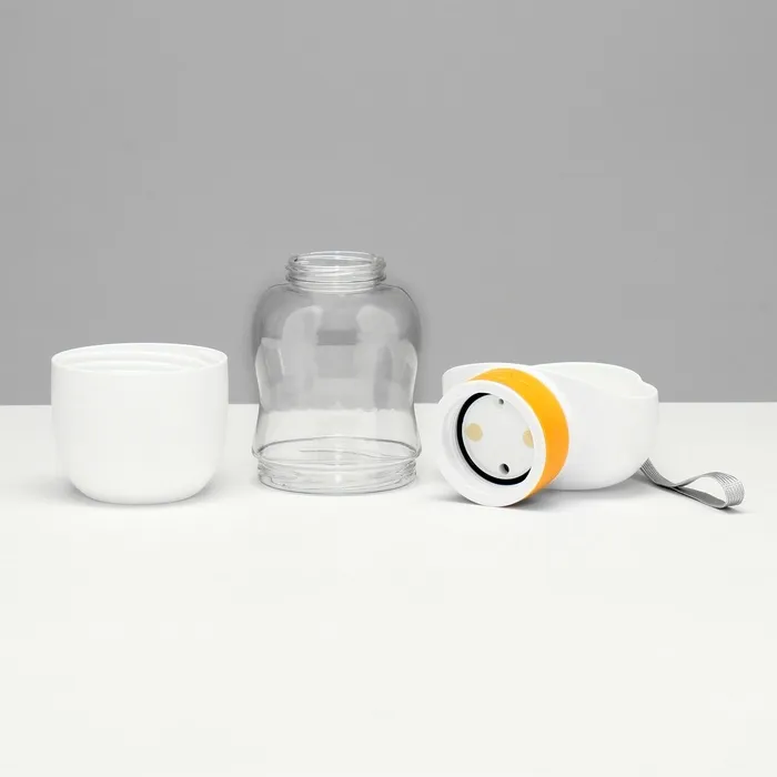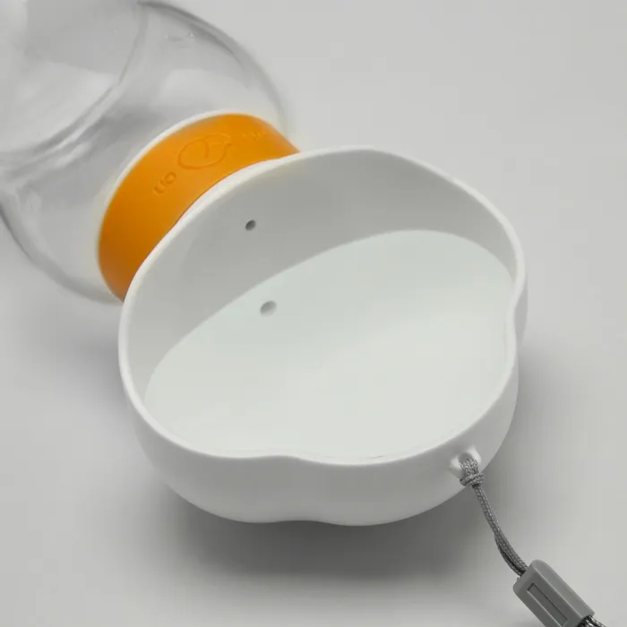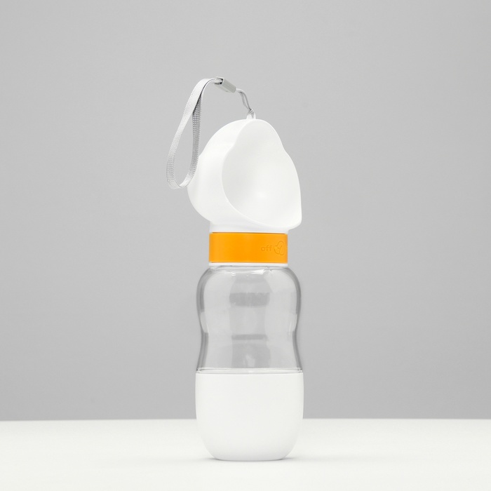 Поилка объёмом 585 мл, выполнена в бело - оранжевом цвете.
