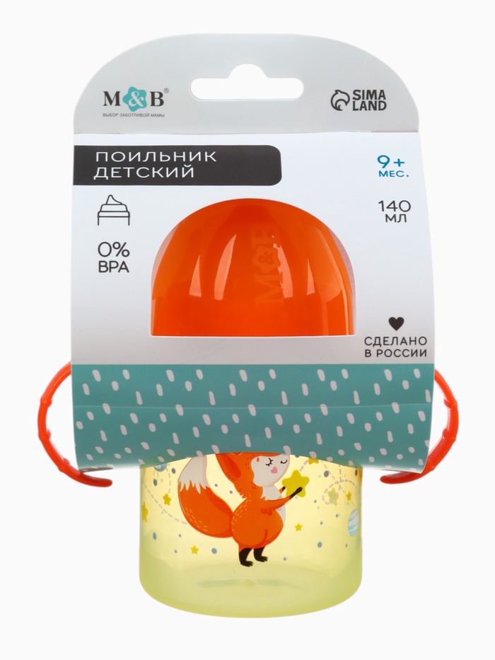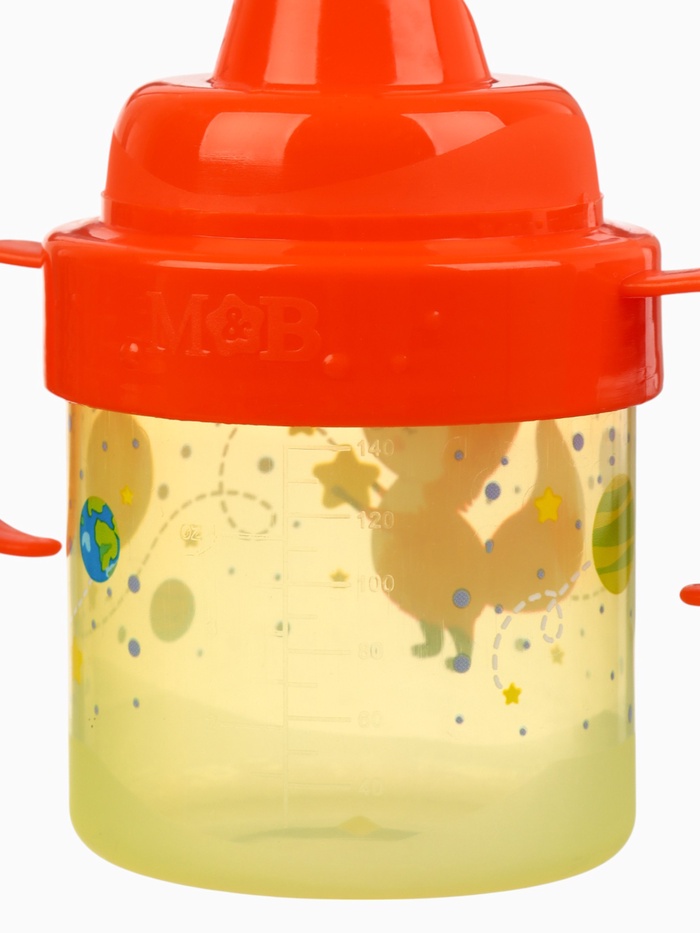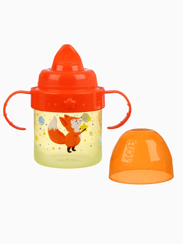Поильник детский M&B «Лисята. Мамы и малыши» с твёрдым носиком, от 9 мес., 140 мл., с ручками, оранжевый — Характеристики