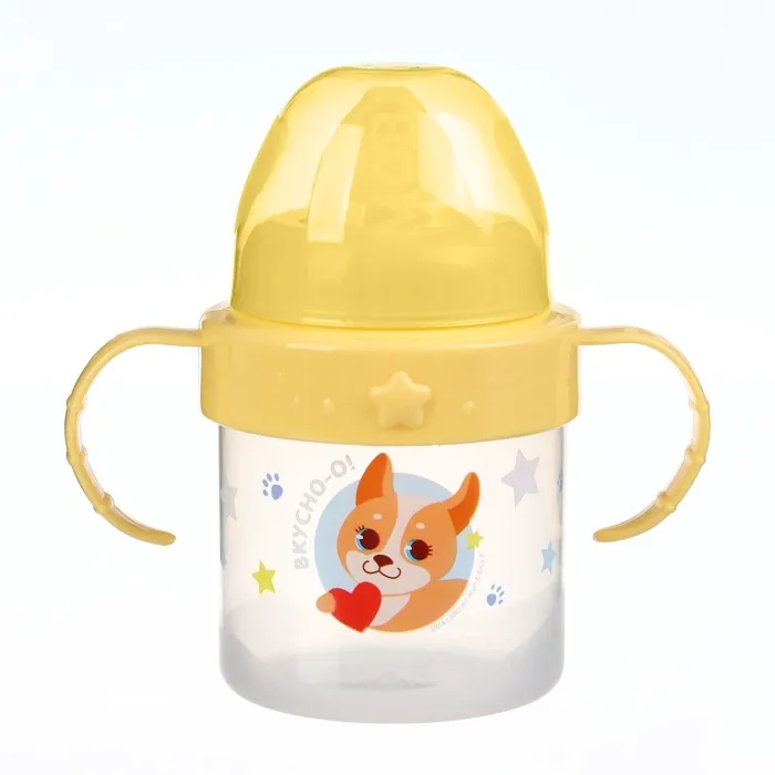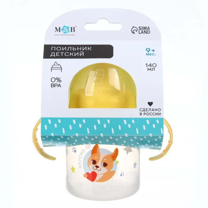 Поильник детский M&B «Собачка Лу» с твёрдым носиком, от 9 мес., 140 мл., с ручками, цвет желтый — Характеристики