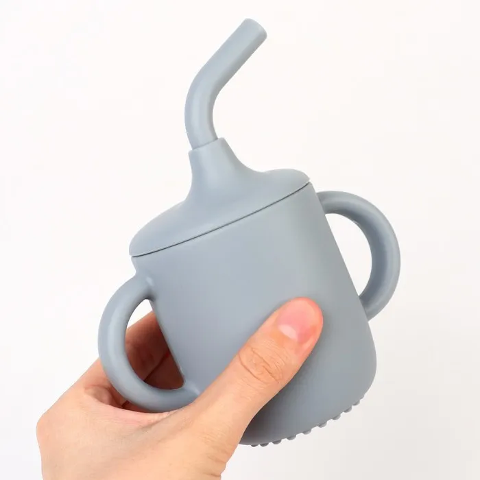 Поильник детский M&B «Try again» с трубочкой, силиконовый, от 5 мес., 200 мл., с ручками, цвет серый — Характеристики