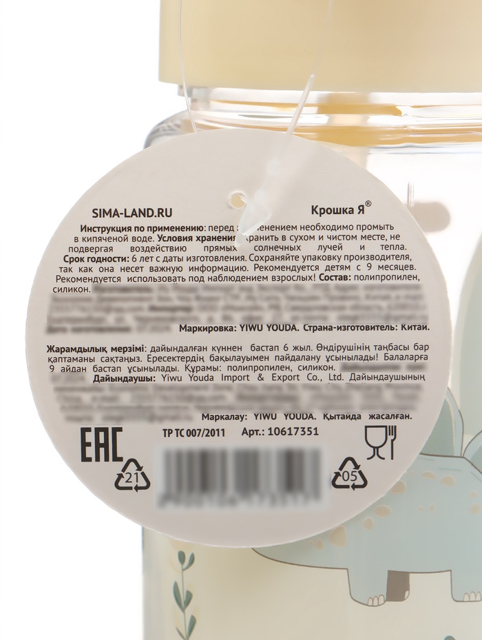 Поильник детский с трубочкой «Дино», 350 мл., бежевый Крошка Я — Характеристики