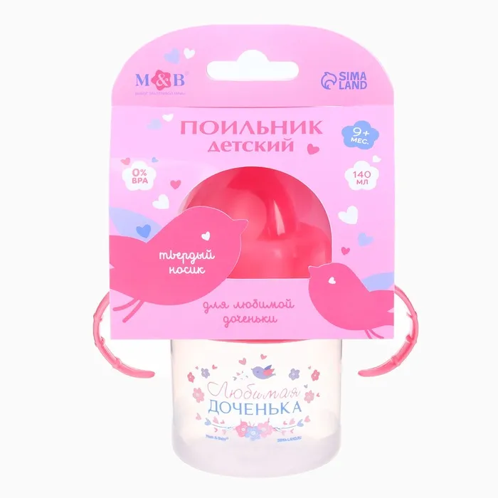Поильник детский с твёрдым носиком «Доченька», от 9 мес., 140 мл., с ручками, розовый — Характеристики