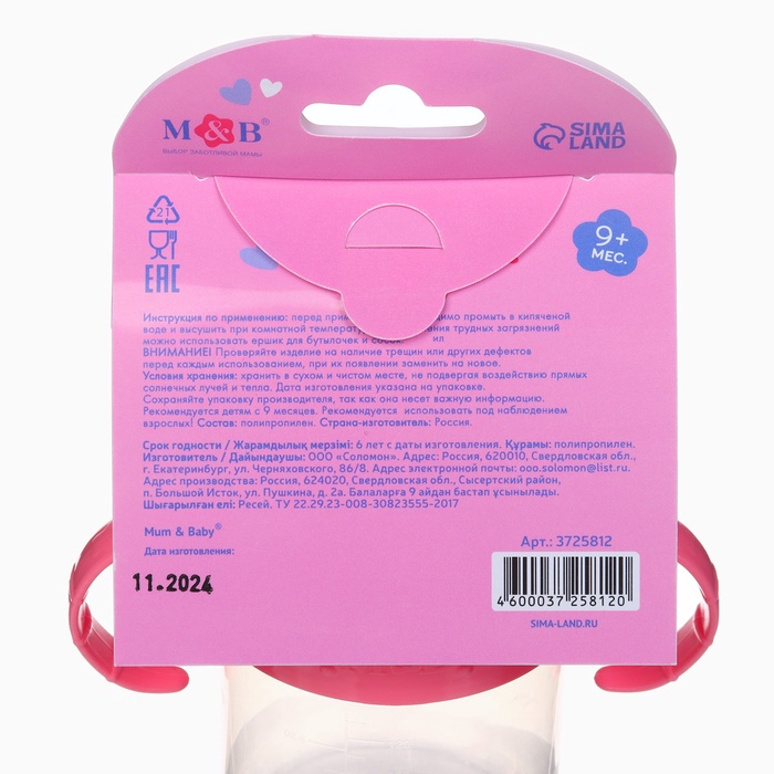 Качество товара подтверждается сертификатом соответствия ЕАС. Поильник выполнен из безопасного пластика, предназначенного для производства детской посуды.