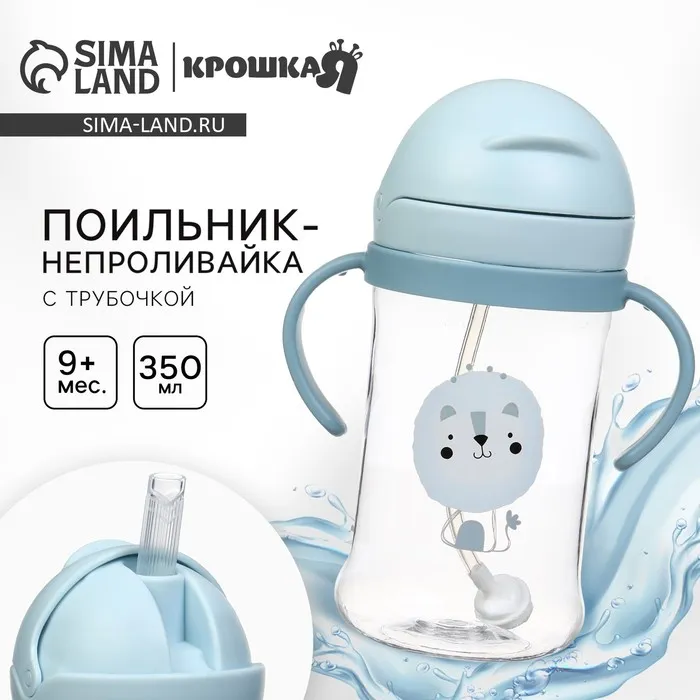 Поильник - непроливайка детский Крошка Я с силиконовой трубочкой и грузиком, от 9 мес., 350 мл., с ручками, голубой — Характеристики