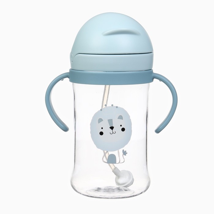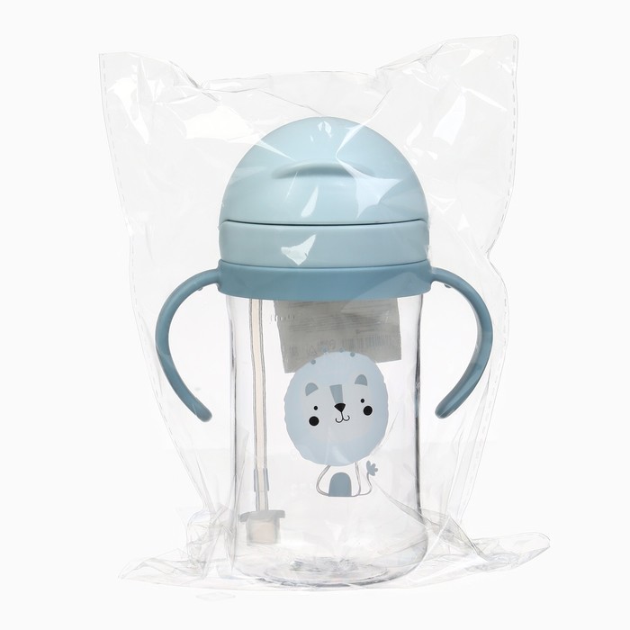 Поильник - непроливайка детский Крошка Я с силиконовой трубочкой и грузиком, от 9 мес., 350 мл., с ручками, голубой