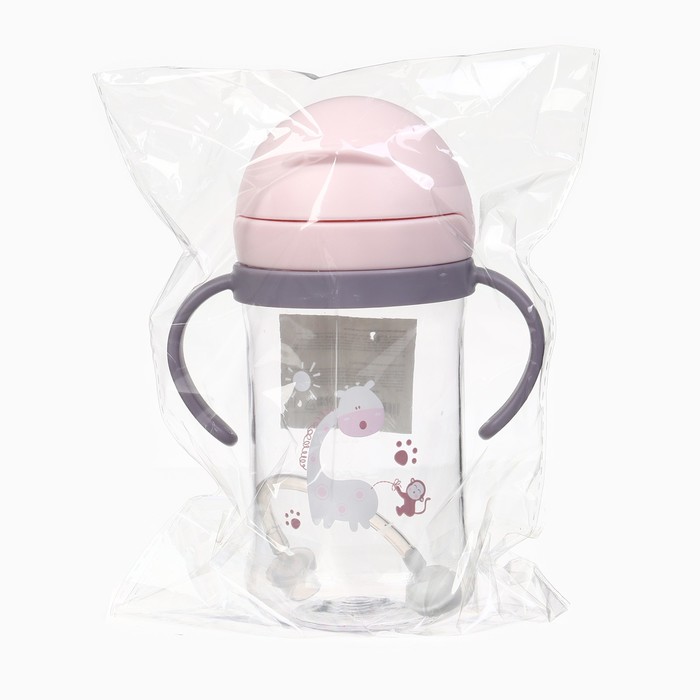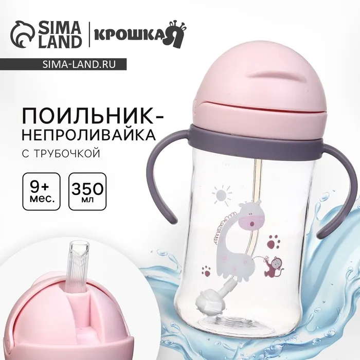 Поильник - непроливайка детский Крошка Я с силиконовой трубочкой и грузиком, от 9 мес., 350 мл., с ручками, розовый — Характеристики