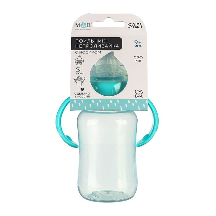 Поильник - непроливайка детский M&B с мягким носиком, от 9 мес., 270 мл., с ручками, бирюзовый — Характеристики