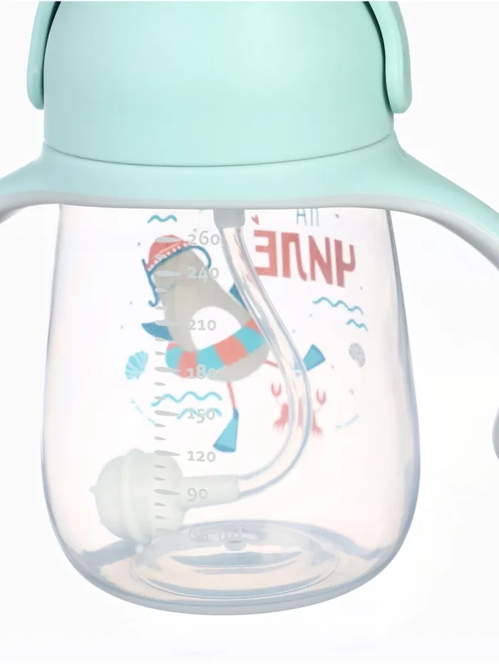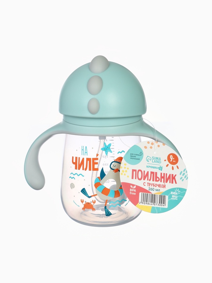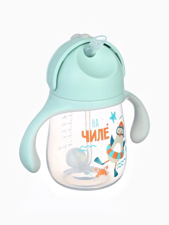 Поильник - непроливайка детский с силиконовой трубочкой «Чайка», 260 мл., с ручками, голубой — Характеристики