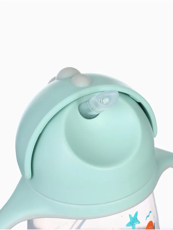 Поильник - непроливайка детский с силиконовой трубочкой «Чайка», 260 мл., с ручками, голубой