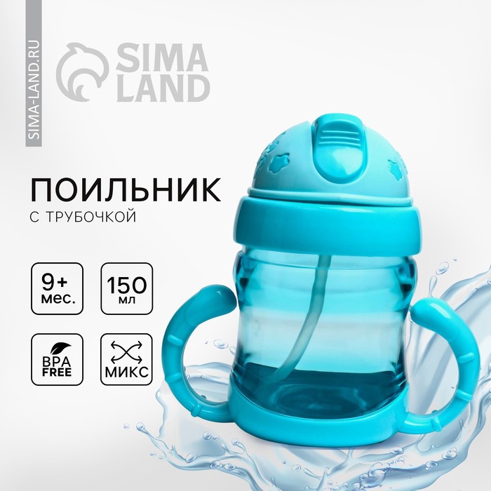 Поильник детский с силиконовой трубочкой, 150 мл., с ручками, цвет МИКС
