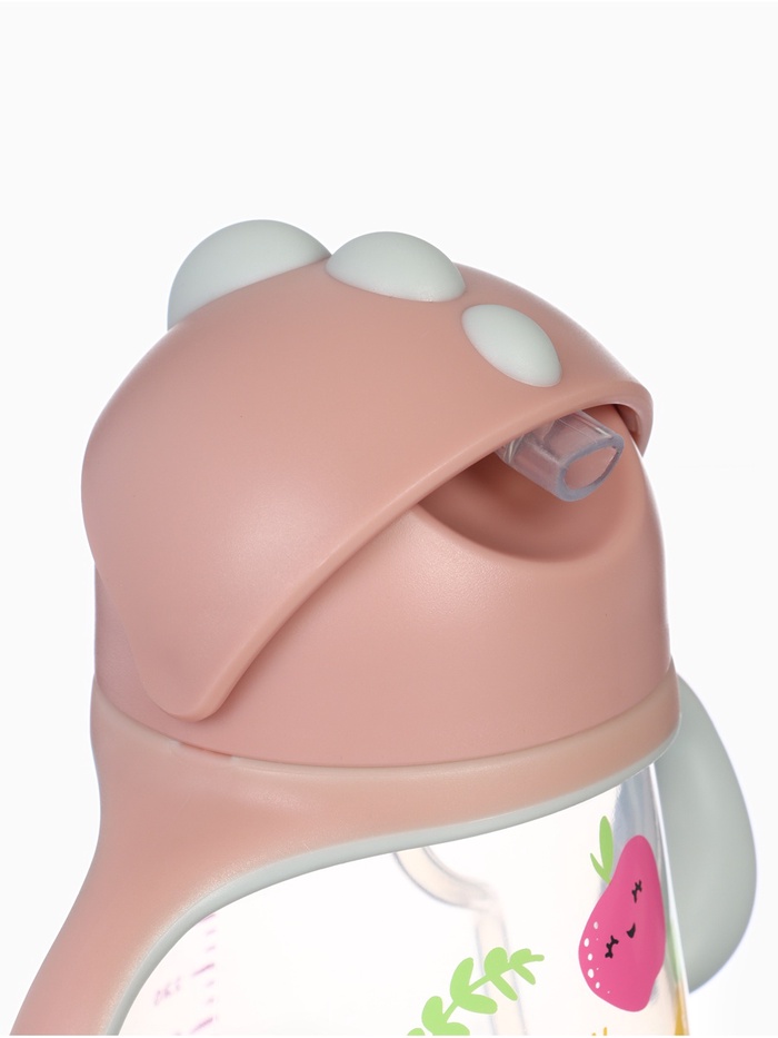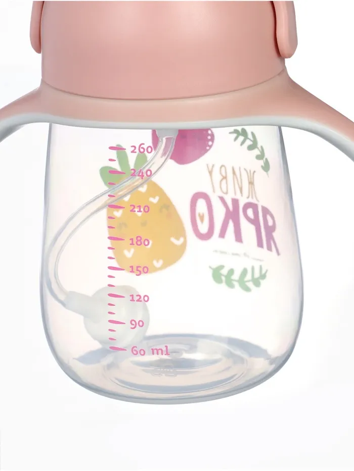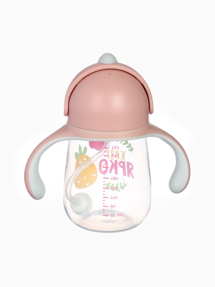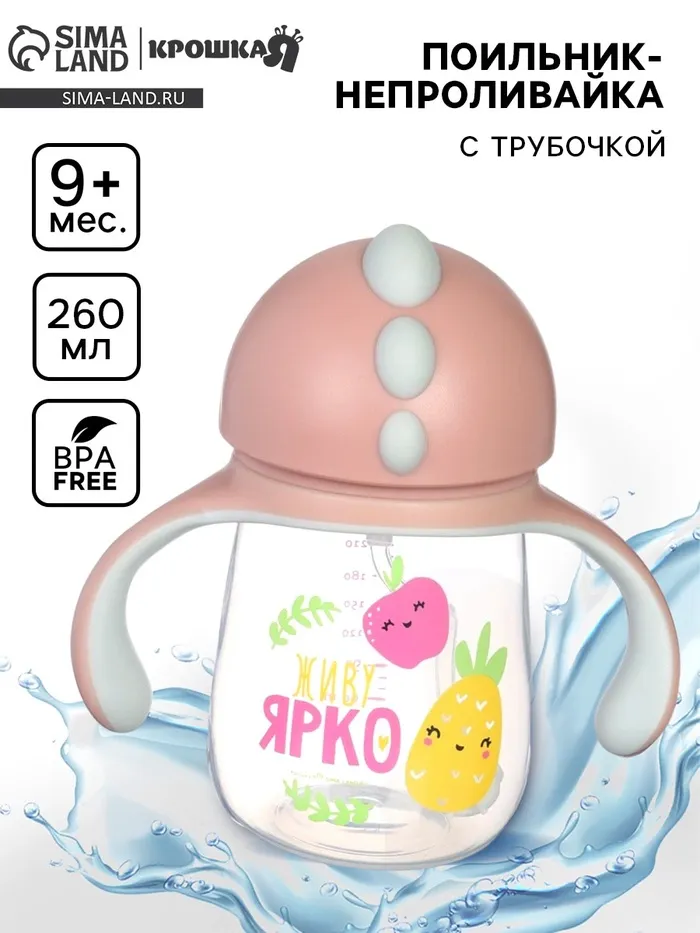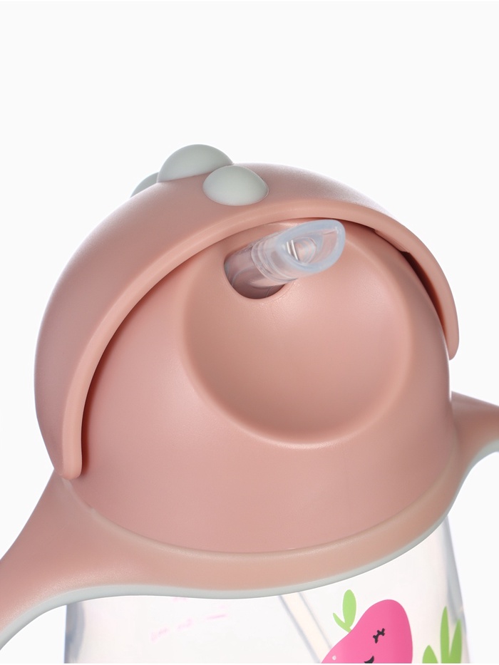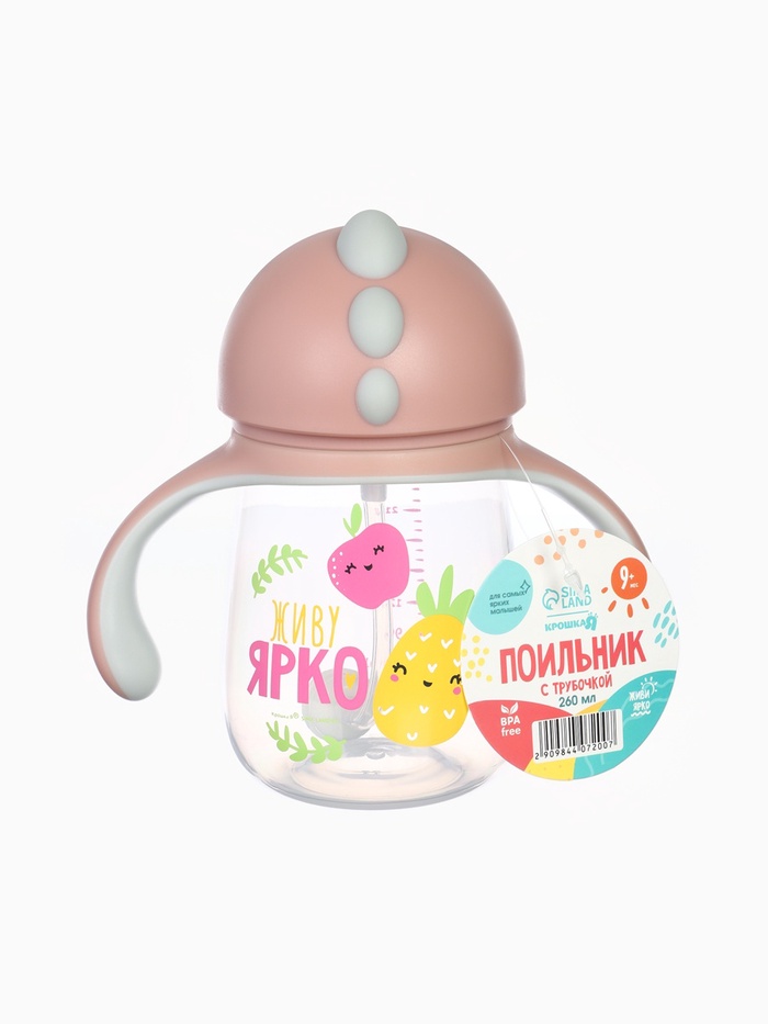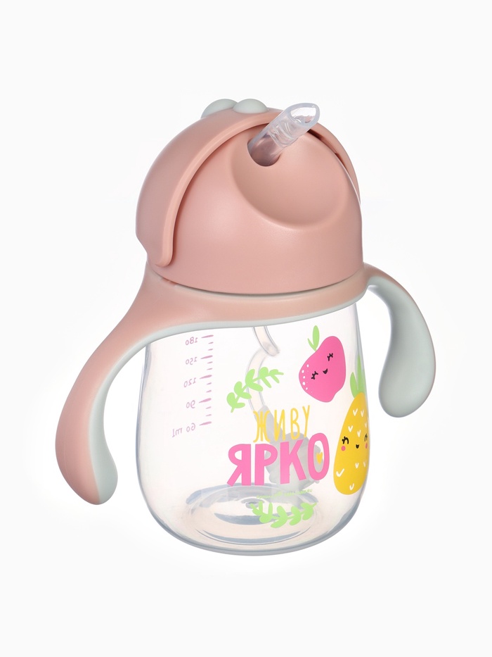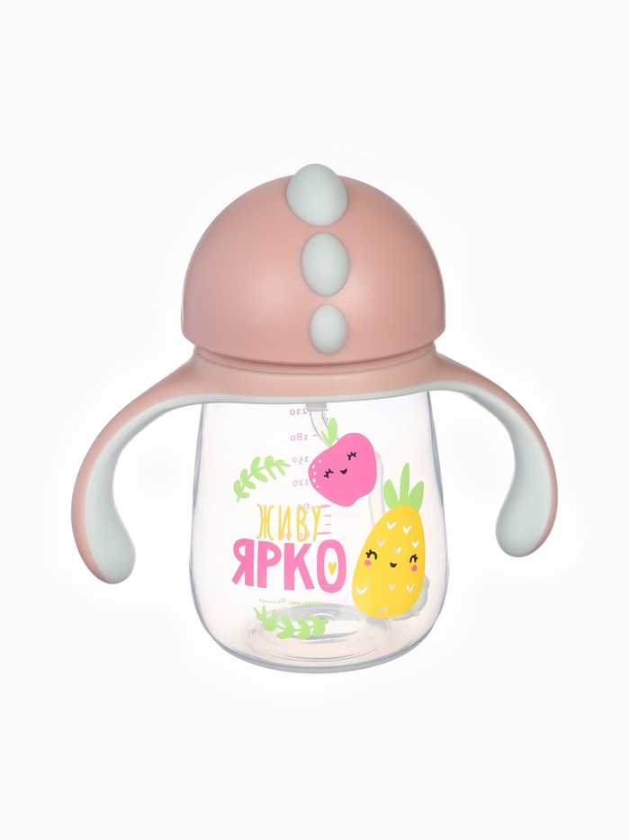 Поильник - непроливайка детский с силиконовой трубочкой «Фрукты», 260 мл., с ручками, розовый — Характеристики