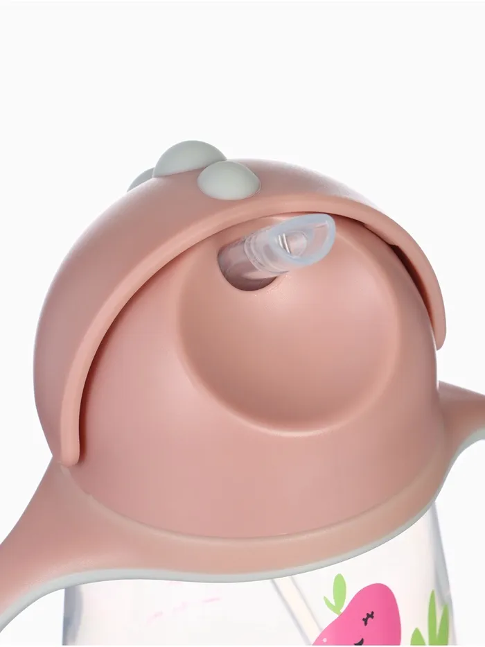 Поильник - непроливайка детский с силиконовой трубочкой «Фрукты», 260 мл., с ручками, розовый