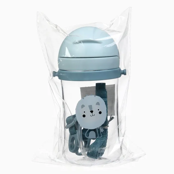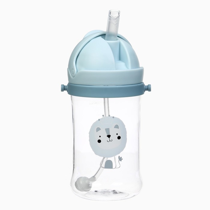 Поильник - непроливайка детский с силиконовой трубочкой и грузиком, от 9 мес., 350 мл., на ленте, цвет голубой, Крошка Я — Характеристики
