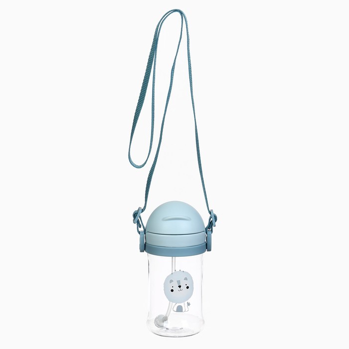 Поильник - непроливайка детский с силиконовой трубочкой и грузиком, от 9 мес., 350 мл., на ленте, цвет голубой, Крошка Я