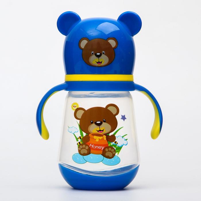 Поильник с ручками, мягкий носик, 240 мл., широкое горло, цвет голубой