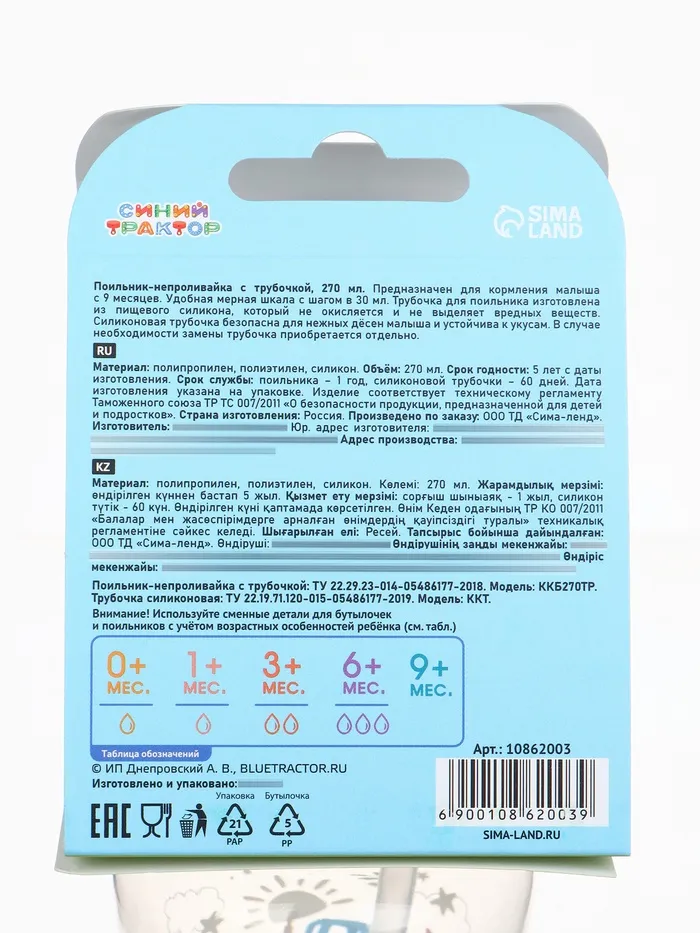 Поильник-непроливайка с трубочкой, 270 мл, Синий трактор — Характеристики