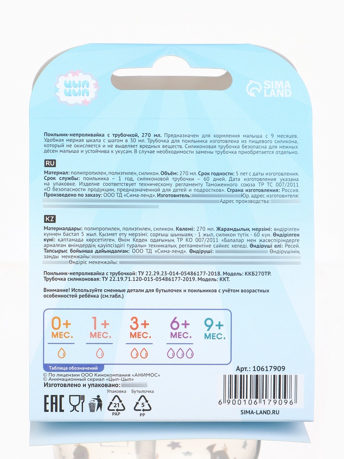 Поильник-непроливайка с трубочкой, 270 мл, ЦЫП-ЦЫП — Характеристики