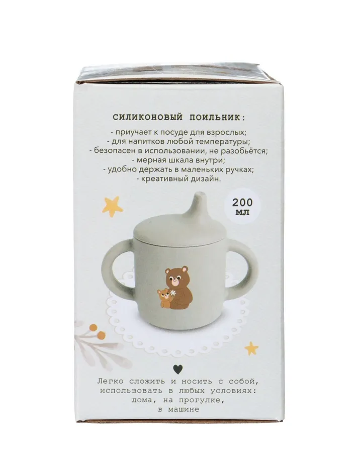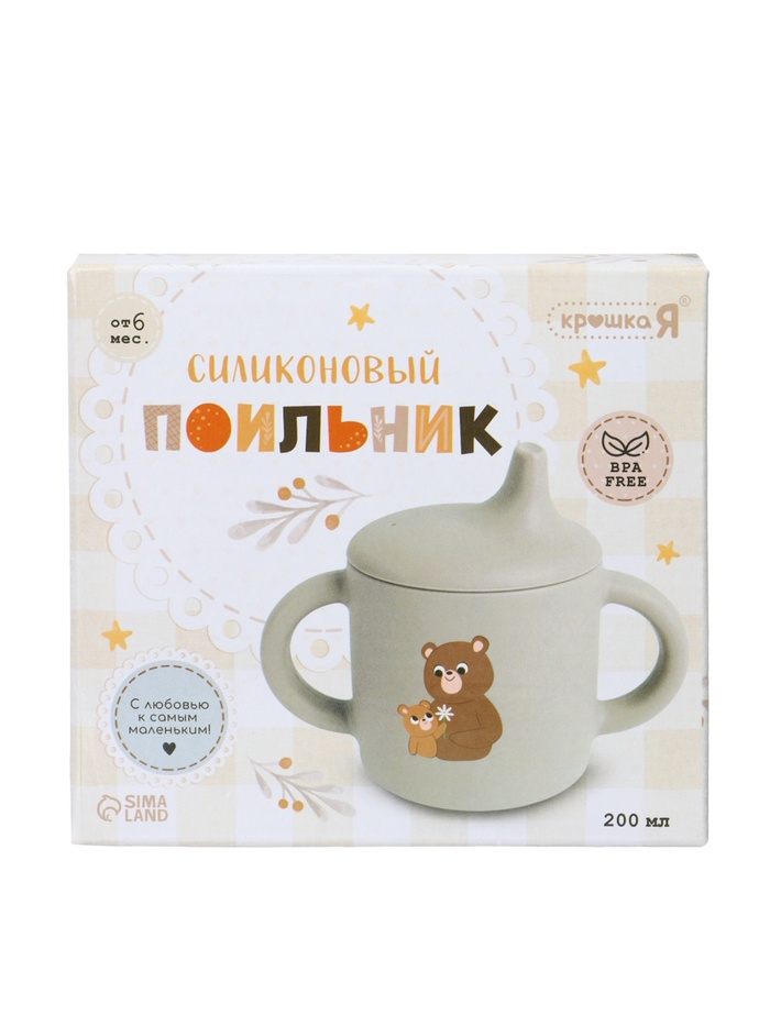 Поильник силиконовый с носиком, с ручками 6+ мес, 200 мл, серый, Крошка Я — Характеристики