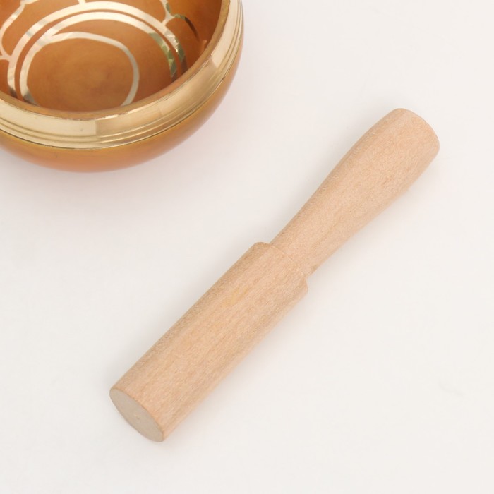 Поющая чаша металл золотая матовая "точки и цветок" с резонатором 4х8х8 см
