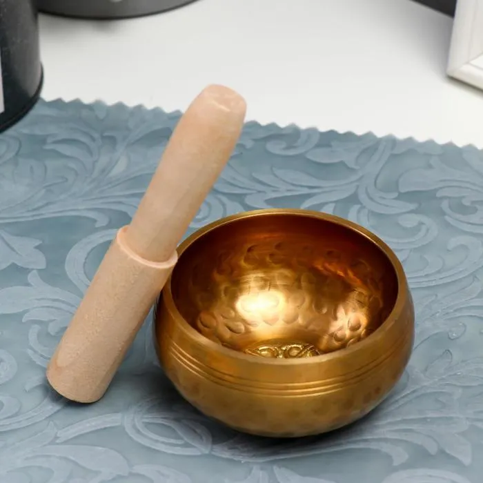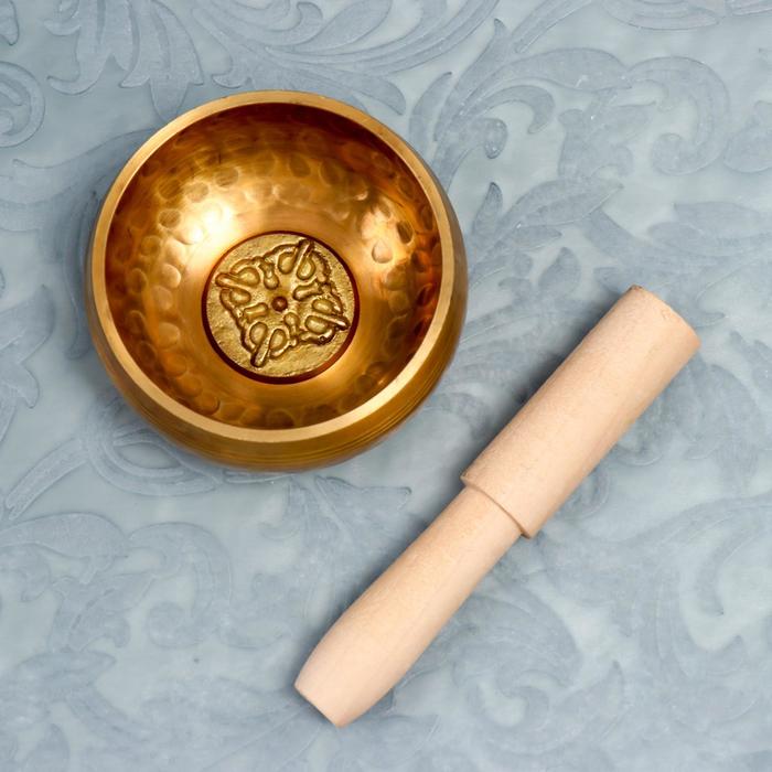 Поющая чаша металл золотая матовая "точки и цветок" с резонатором 4х8х8 см — Характеристики