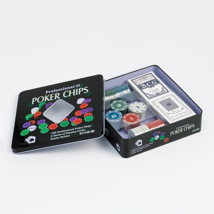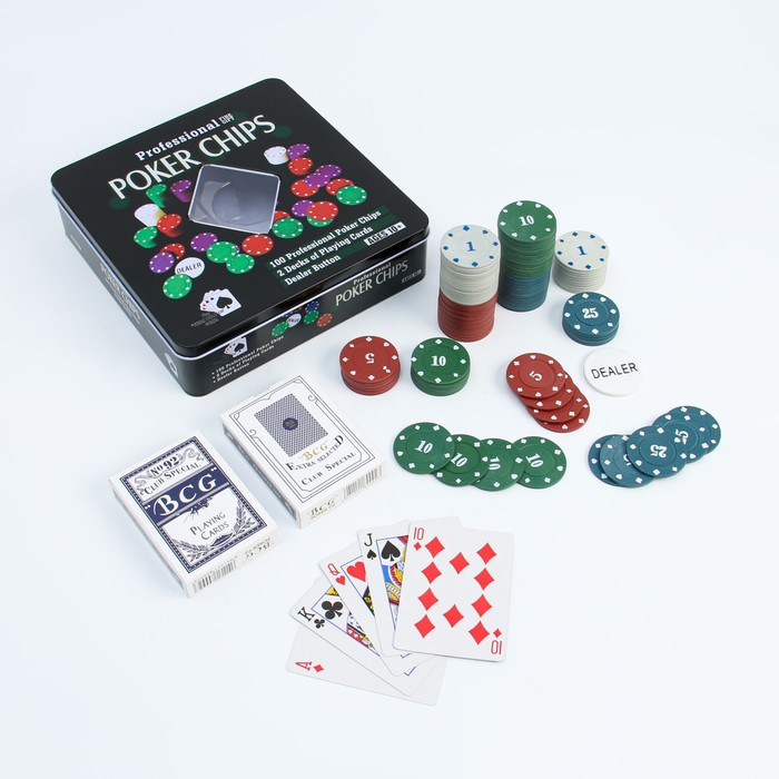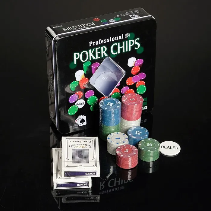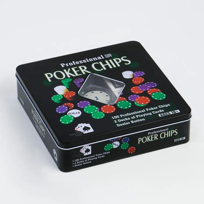 Покер, набор для игры (карты 2 колоды, фишки 100 шт.), с номиналом