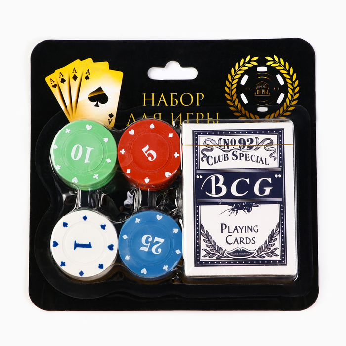 Покер, набор для игры, карты 54 шт., фишки 24 шт. с номиналом — Характеристики