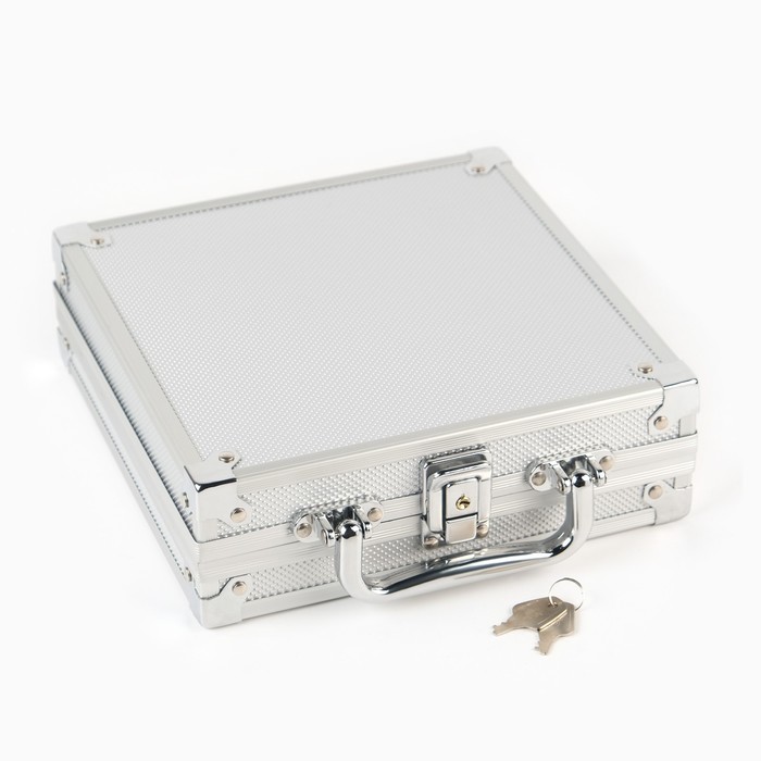 Набор в металлическом кейсе прекрасно подойдет для небольшой компании. Такой кейс удобно брать с собой — на вечеринку, на дачу, на пикник, в гости. Он закрывается на ключ, а значит, ни одна фишка из игры не потеряется в дороге. Пластиковые карты, фишки и внушительного вида кейс придают игре особую атмосферу.