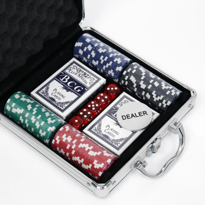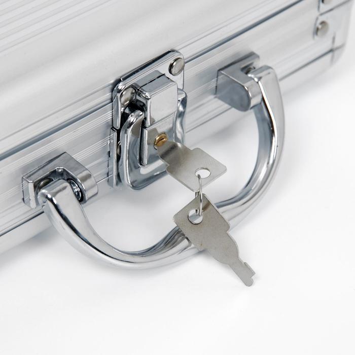 Набор в металлическом кейсе прекрасно подойдет для небольшой компании. Такой кейс удобно брать с собой — на вечеринку, на дачу, на пикник, в гости. Он закрывается на ключ, а значит, ни одна фишка из игры не потеряется в дороге. Пластиковые карты, фишки и внушительного вида кейс придают игре особую атмосферу.