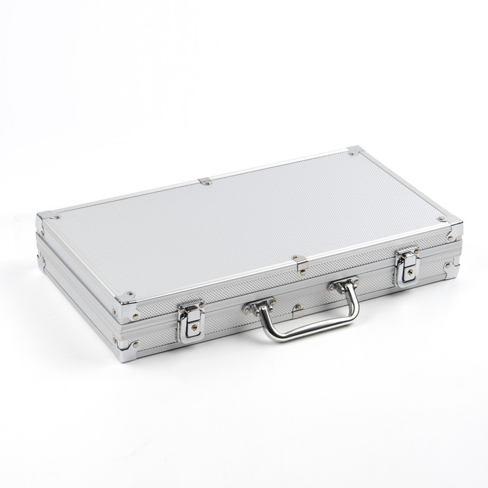 Набор в металлическом кейсе прекрасно подойдет для небольшой компании. Такой кейс удобно брать с собой — на вечеринку, на дачу, на пикник, в гости. Он закрывается на ключ, а значит, ни одна фишка из игры не потеряется в дороге. Пластиковые карты, фишки и внушительного вида кейс придают игре особую атмосферу.
