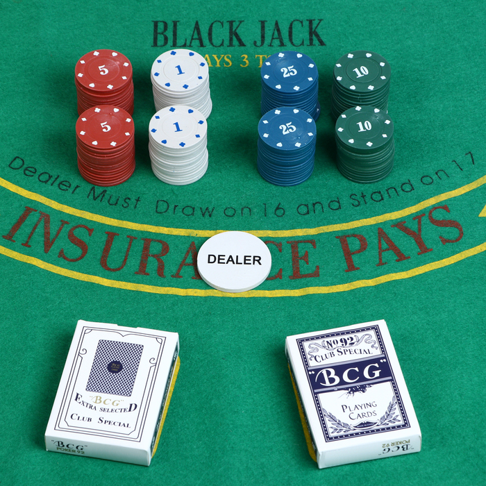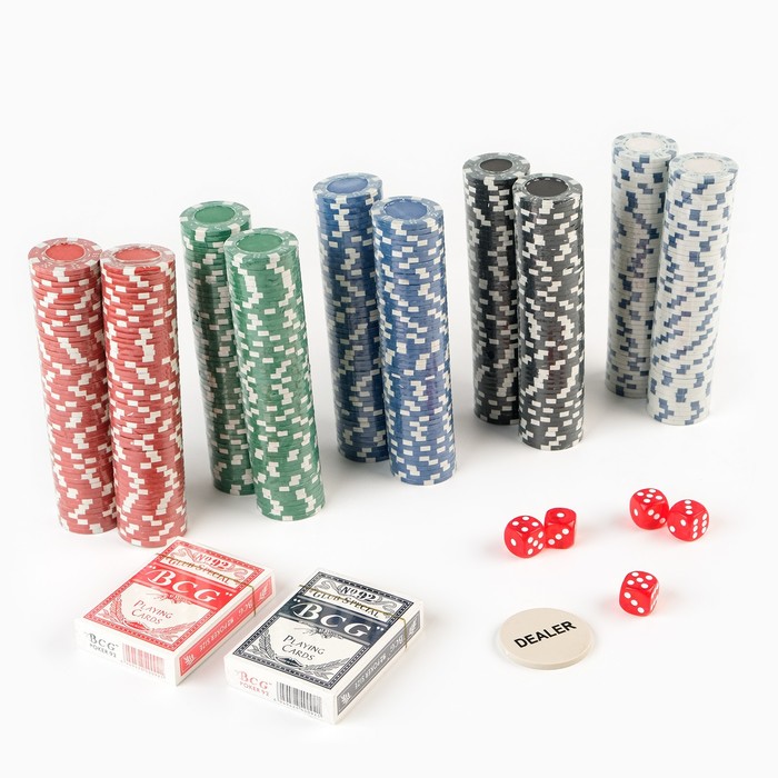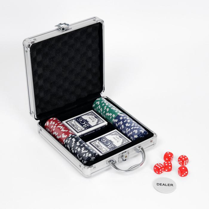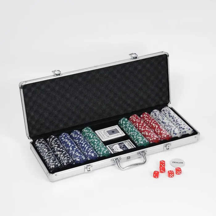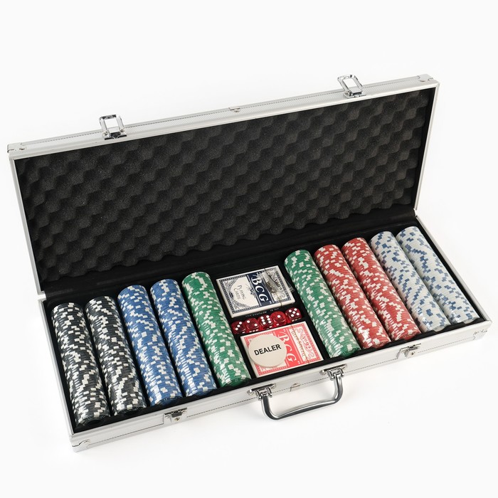 Покер в металлическом кейсе (2 колоды, фишки 500 шт. б/номинала, 5 кубиков), 20,5×56 см — Характеристики