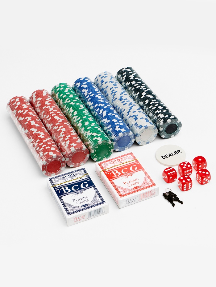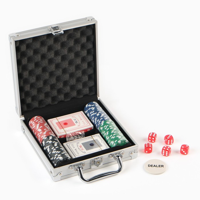 Набор в металлическом кейсе прекрасно подойдет для небольшой компании. Такой кейс удобно брать с собой — на вечеринку, на дачу, на пикник, в гости. Он закрывается на ключ, а значит, ни одна фишка из игры не потеряется в дороге. Пластиковые карты, фишки и внушительного вида кейс придают игре особую атмосферу.