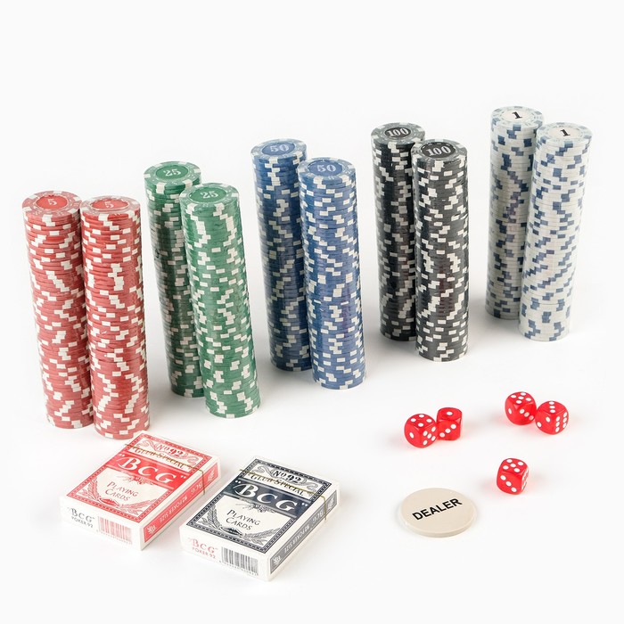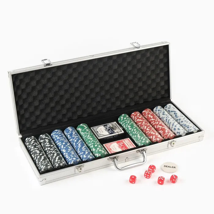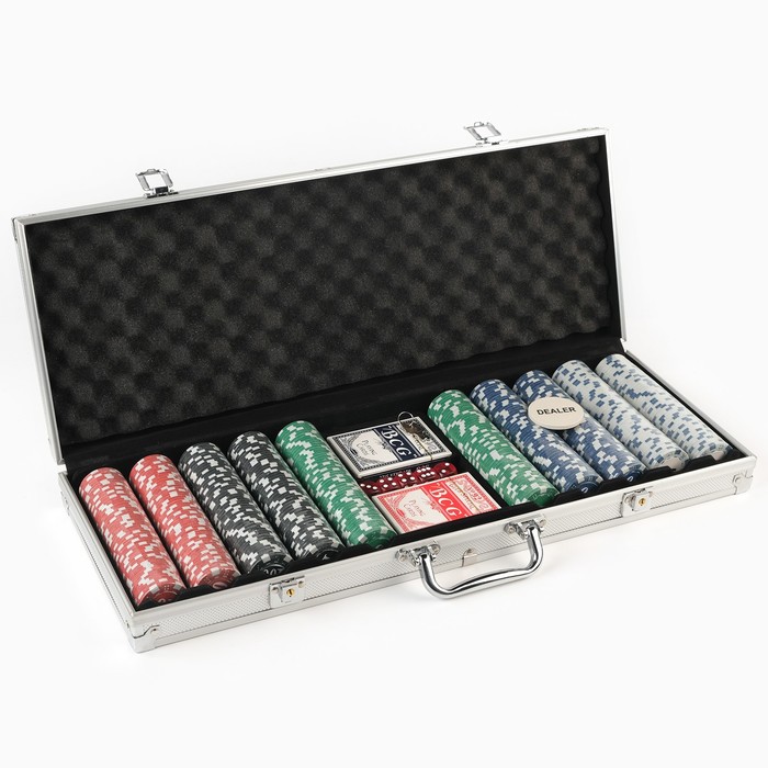 Покер в металлическом кейсе (2 колоды, фишки 500 шт. с/номиналом, 5 кубиков), 20.5×56 см — Характеристики
