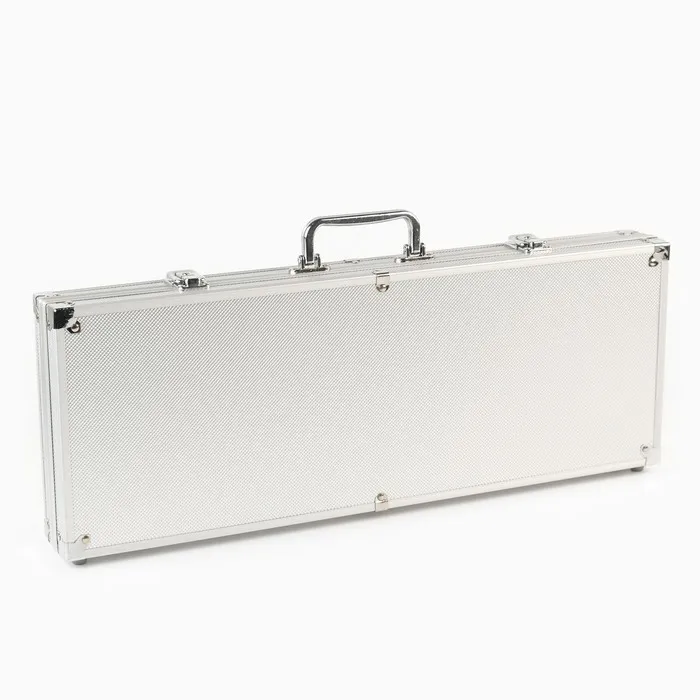 Набор в металлическом кейсе прекрасно подойдет для небольшой компании. Такой кейс удобно брать с собой — на вечеринку, на дачу, на пикник, в гости. Он закрывается на ключ, а значит, ни одна фишка из игры не потеряется в дороге. Пластиковые карты, фишки и внушительного вида кейс придают игре особую атмосферу.