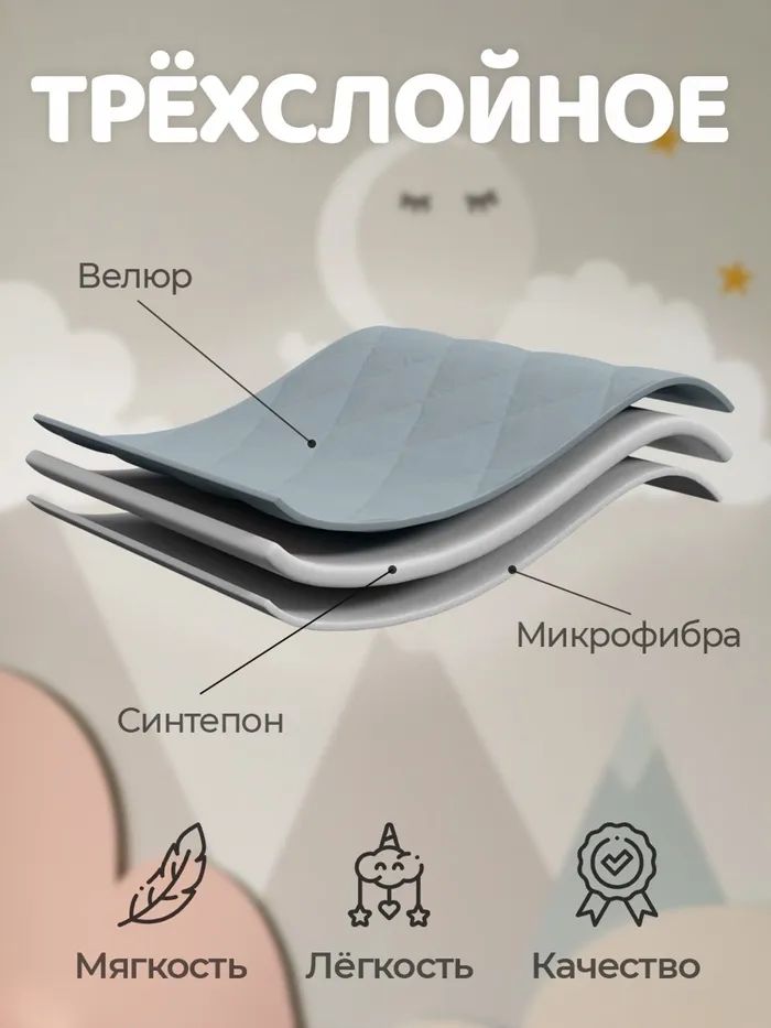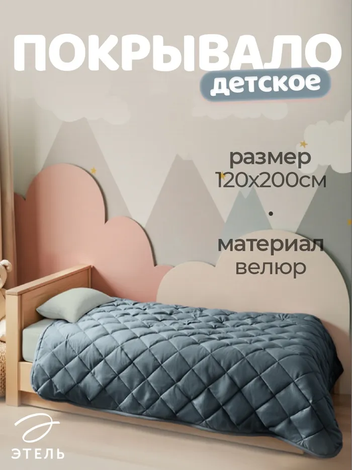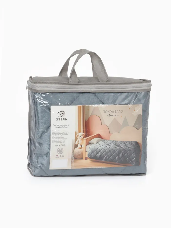 Покрывало 1.5-спальное «Этель» Silk velvet, 120×200±5 см, серо-голубое, велюр — Характеристики