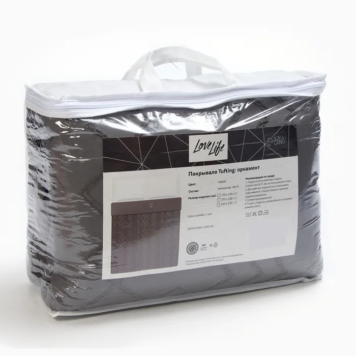 Покрывало 1.5-спальное LoveLife Tufting: Орнамент, 150×220±5 см, микрофайбер, серое — Характеристики