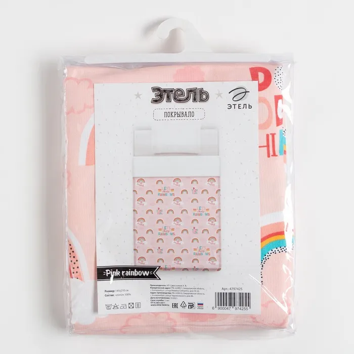Покрывало детское Этель 1,5 сп "Pink Rainbow", 145х210 см, 100% хлопок — Характеристики