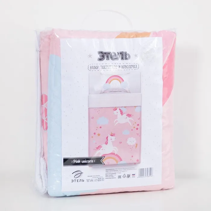 Покрывало детское и наволочка Этель 1,5 сп "Pink unicorn", 145х210 см, 40х60 см, микрофибра — Характеристики