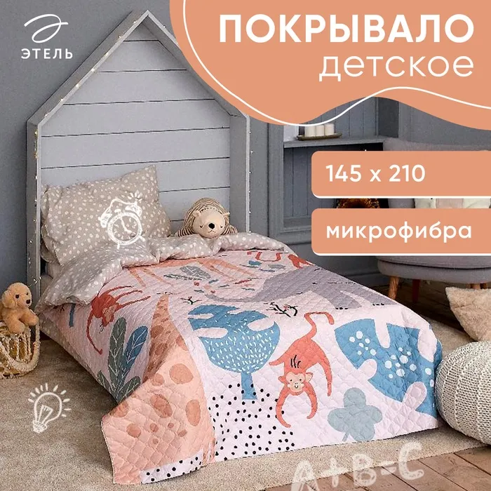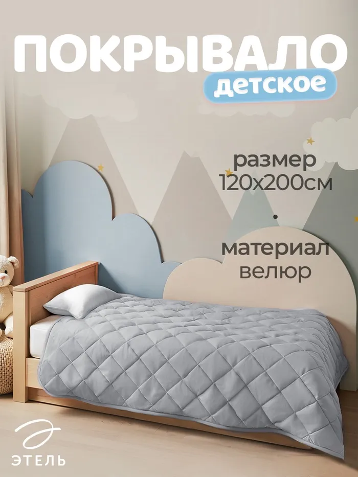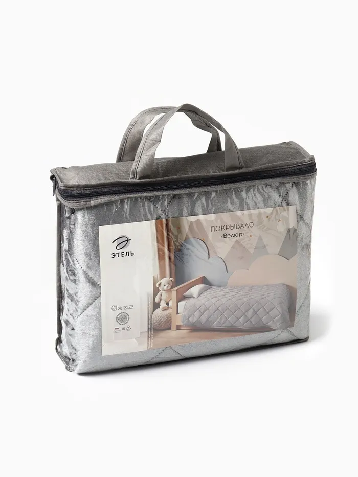 Покрывало Этель 1.5 сп 120×200±5 см, серый, велюр, 100% п/э — Характеристики
