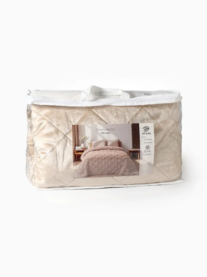 Покрывало Этель 220х240±5см, цвет бежевый, велюр, полиэстер — Характеристики