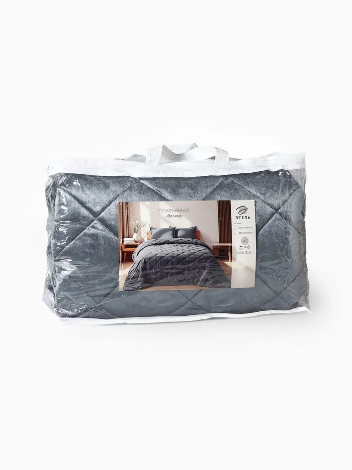 Покрывало Этель 260х240±5см, цвет серо-голубой, велюр, полиэстер — Характеристики