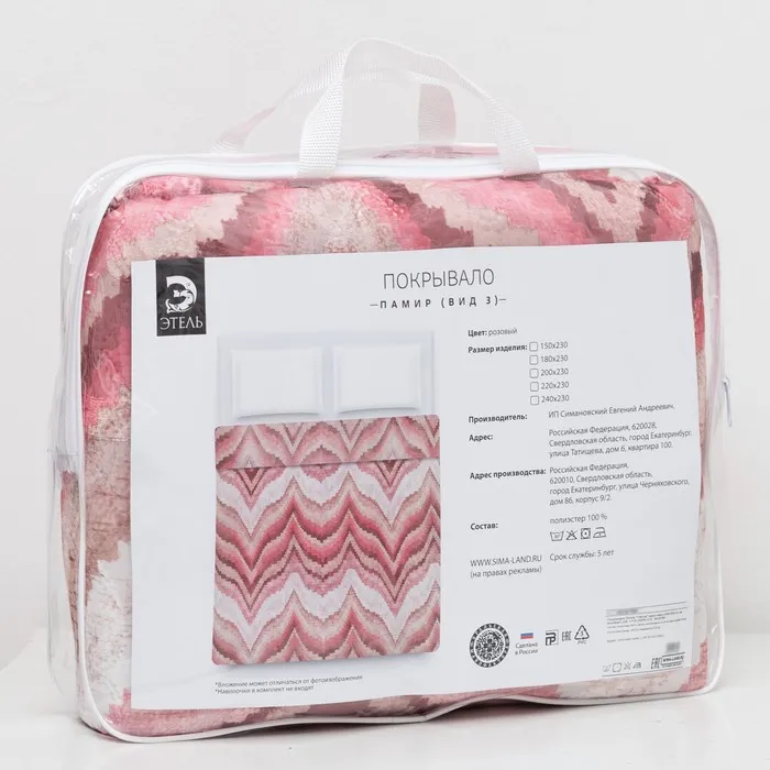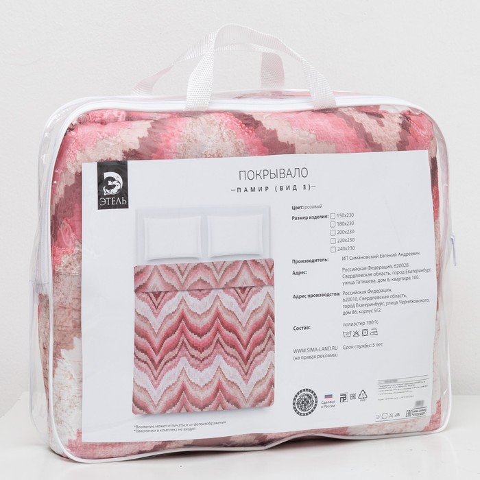Покрывало Этель "Памир" 1,5 сп 150*230 см, цв. розовый,160 г/м2,100% п/э — Характеристики