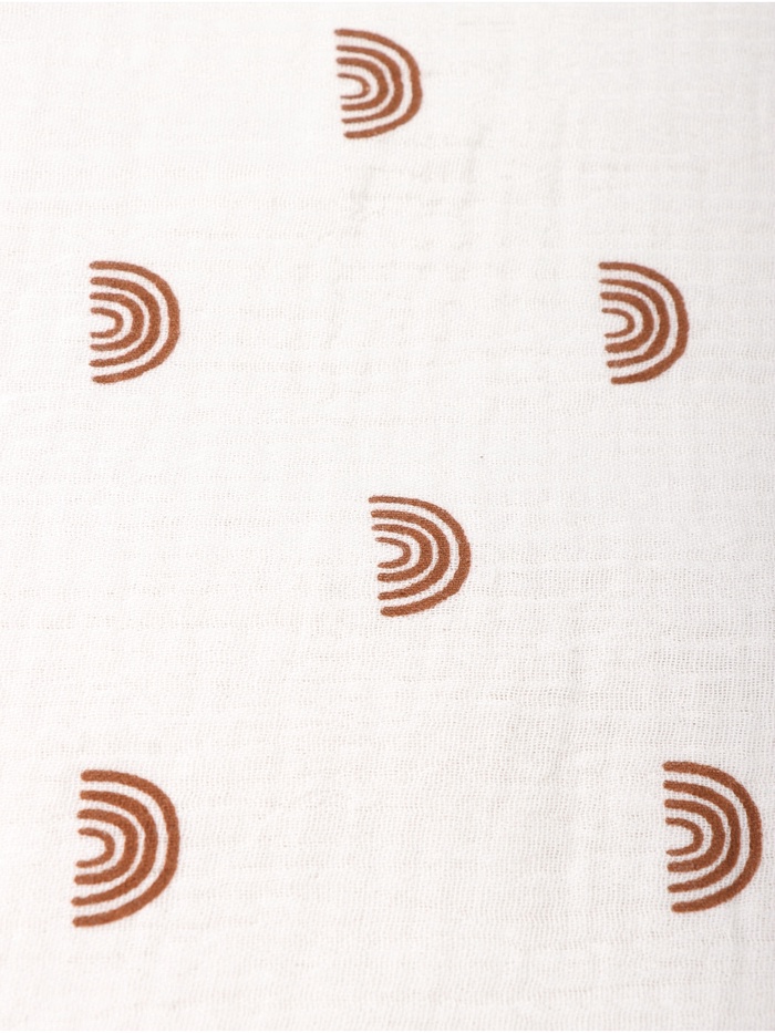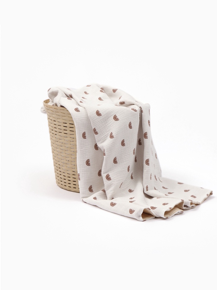 Покрывало «Радуга», 100×130 см, 4-слойный муслин, 100% хлопок — это мягкое и дышащее покрытие для детского пространства. Лёгкое изделие с нежным принтом подходит на кроватку, пелёнальный стол или как игровое одеяло — заботливое решение для тех, кто ценит натуральность, уют и атмосферу детской гармонии без излишеств.