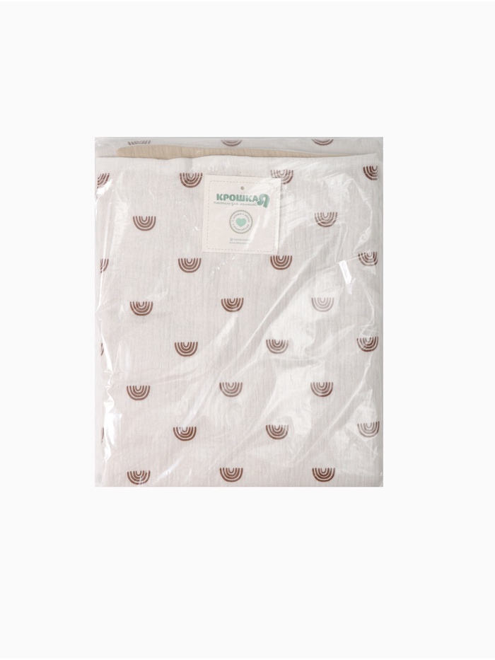 Это покрывало делает детское пространство частью вашей любви — о внимании к деталям, безопасности и внутреннем тепле. Бежево-белая гамма и едва заметная радуга работают вместе, чтобы передать атмосферу спокойствия, свежести и нежности. Укройте малыша — и почувствуйте: каждый момент рядом становится чуть проще, а мир — немного ближе к тому, где главное — это тепло, которое вы даёте руками, сердцем и маленькими, но важными вещами.